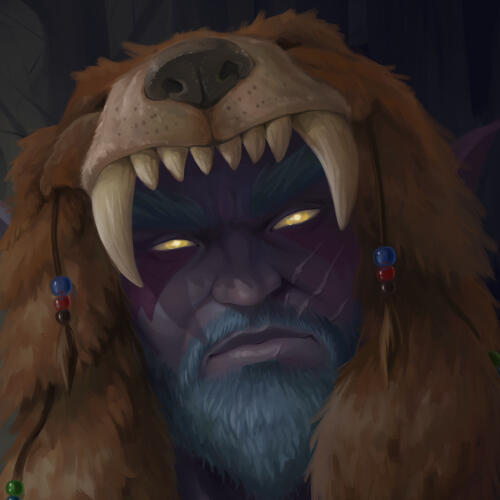 Hailing from an ancient lineage, he is a relic of a bygone era. Though he's a behemoth even amidst his own kin, there is unexpected gentleness in his taut muscles. They are a mosaic of magical symbols that ebb to life with a single breath. If not for them, he may be mistaken as part of the Sisterhood of Elune with his collection of moonstone jewelry. For years he was secluded in the harrowing halls of Eldre'thalas. Now he ventures Azeroth with abundant curiosity.